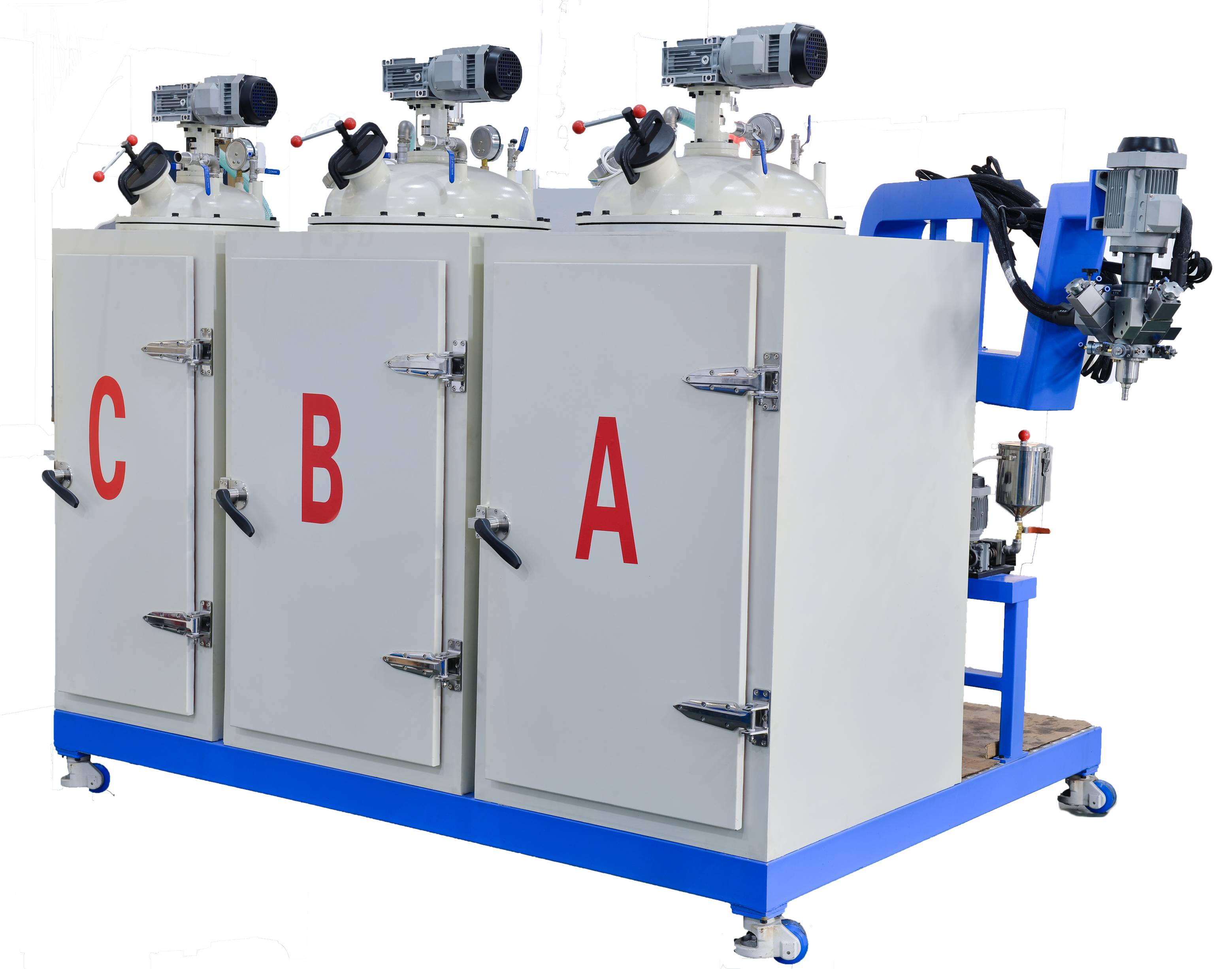 獨(dú)立色漿系統(tǒng),混合均勻。配有真空脫氣系統(tǒng),制品無宏觀氣泡,澆注完畢自動(dòng)清洗。