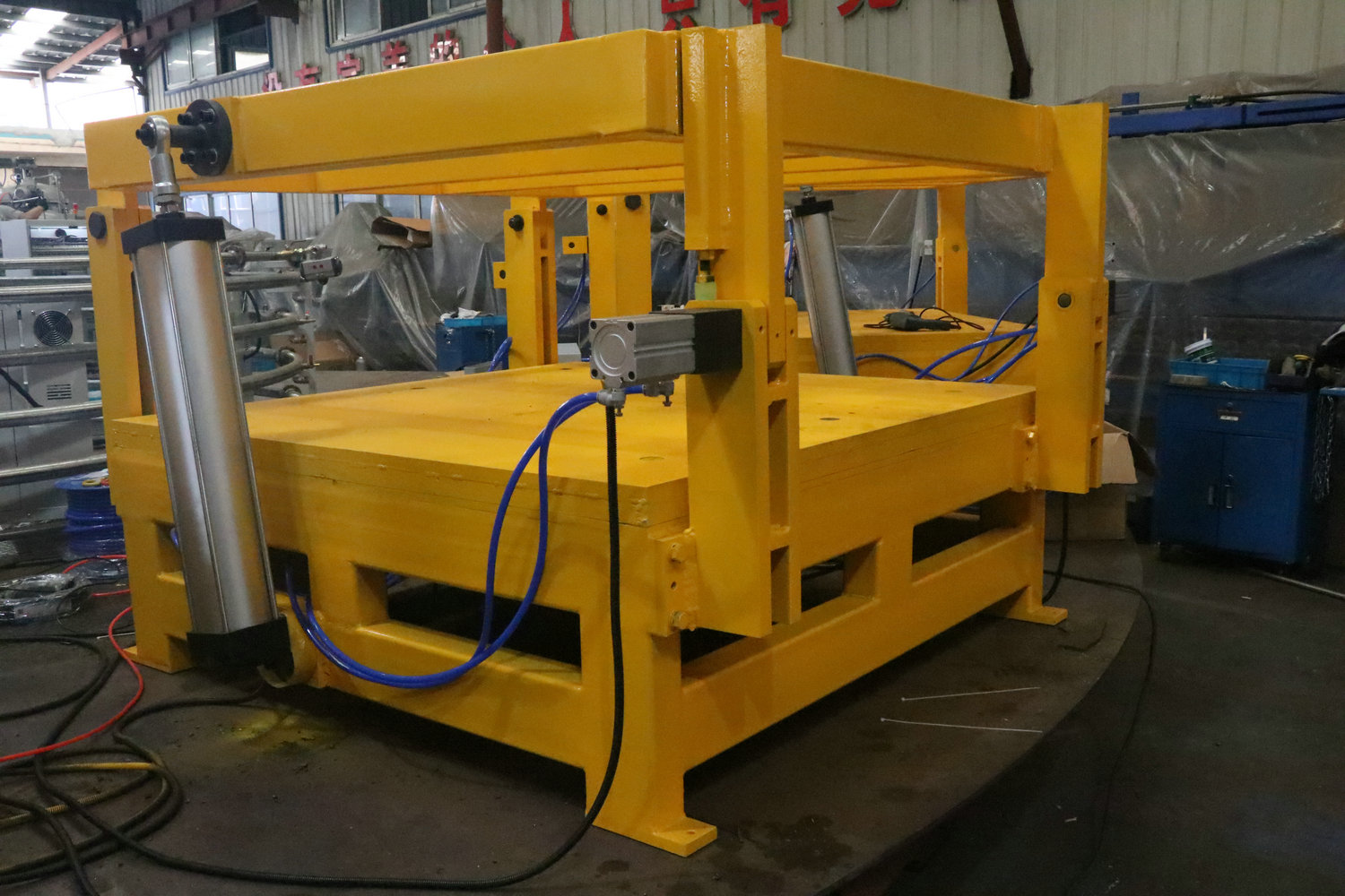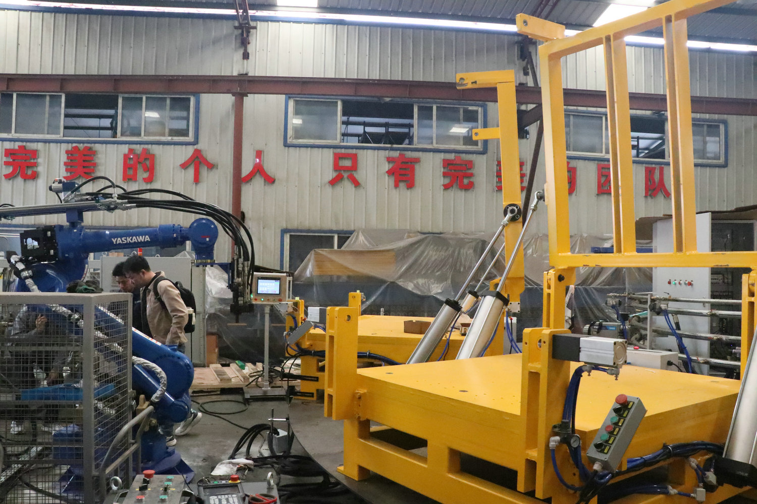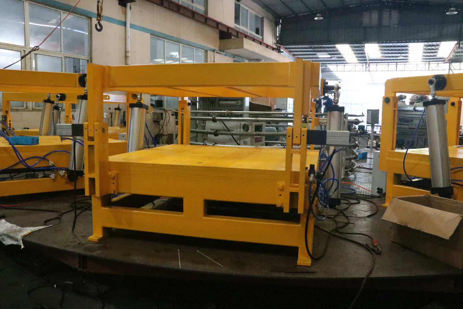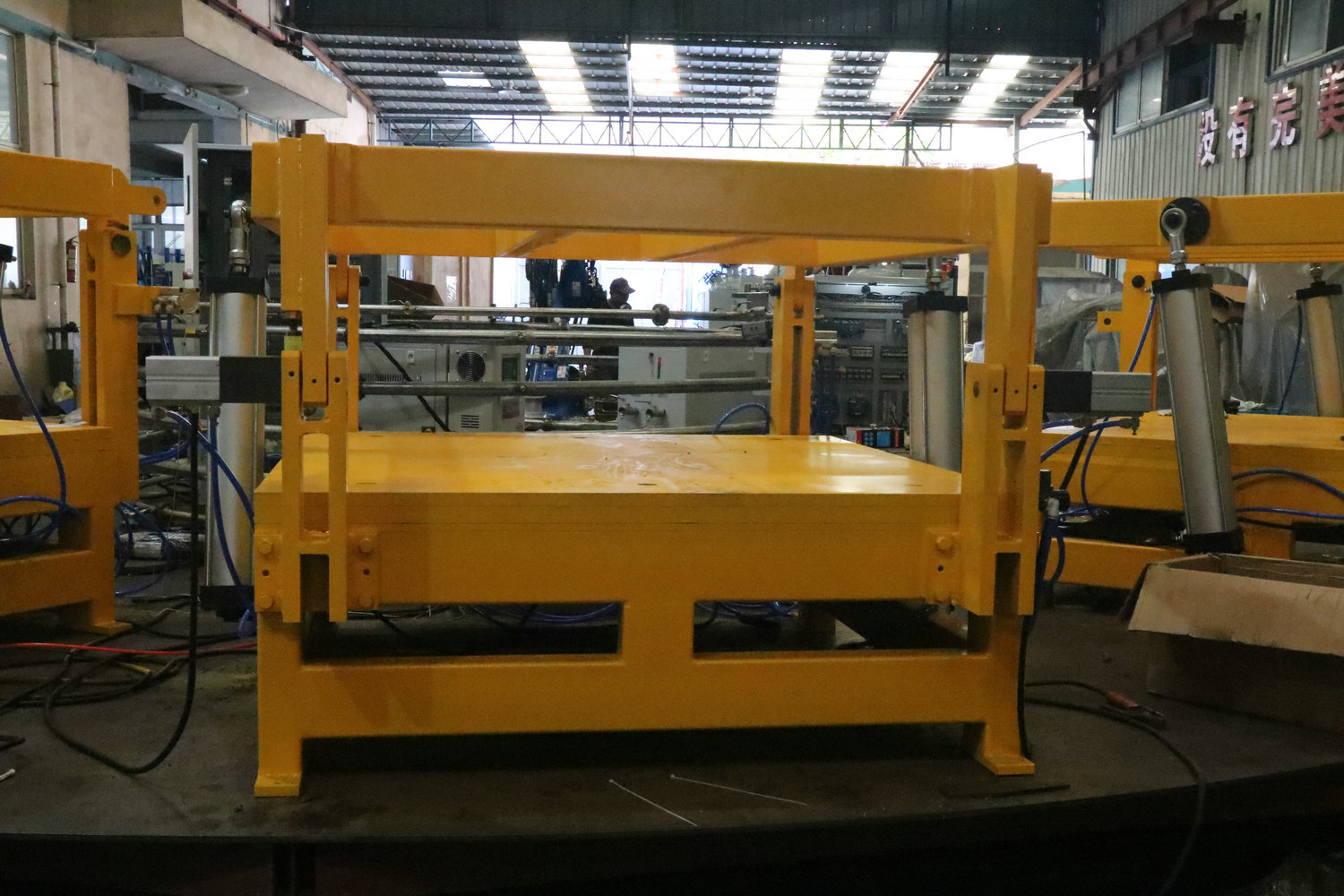 每個模架為獨立的控制系統(tǒng),單獨的PLC控制,模架多為固定,搭配聚氨酯發(fā)泡機使用,采用機頭固定澆注或機械臂澆注的形式進行生產(chǎn)。